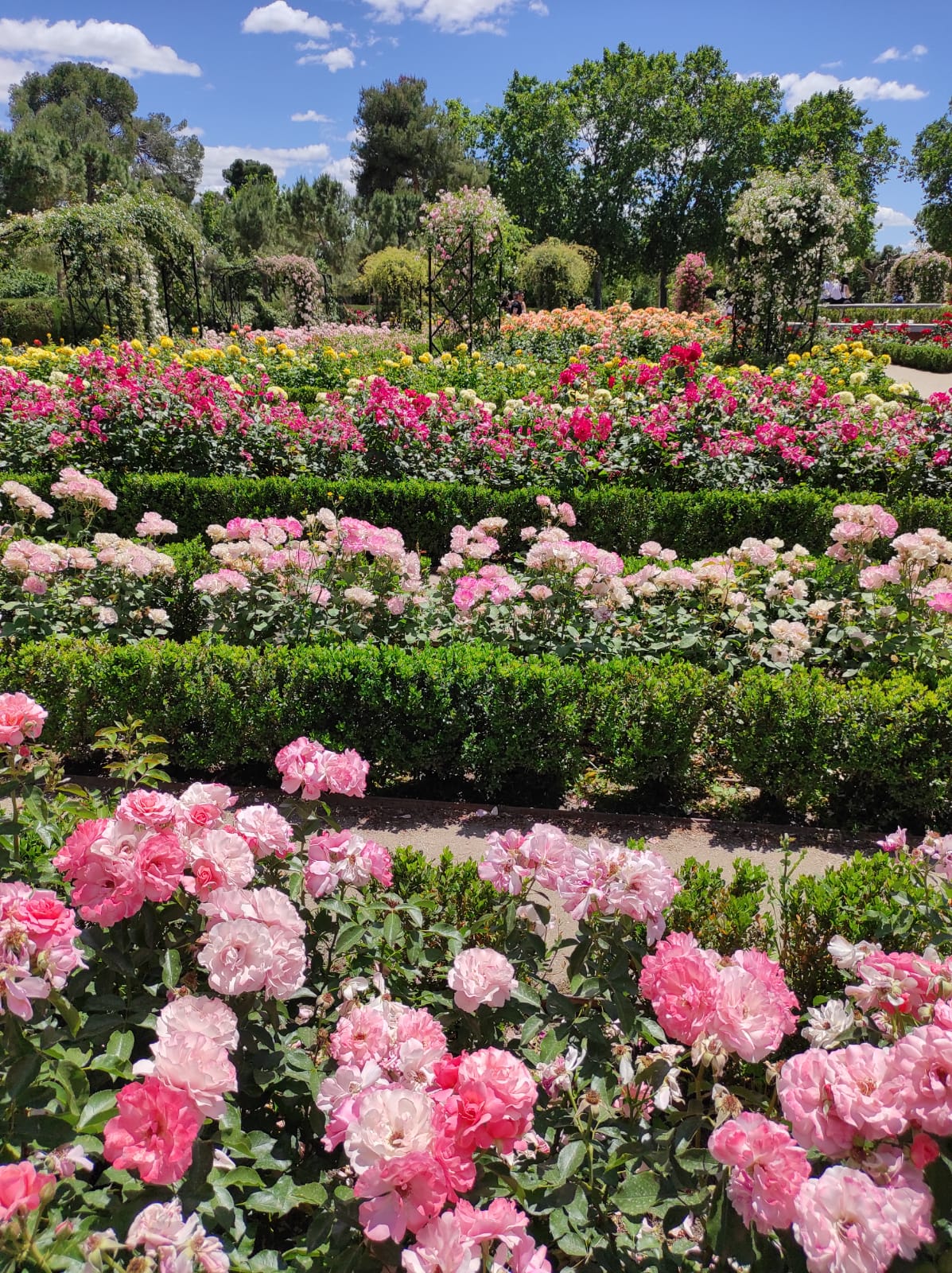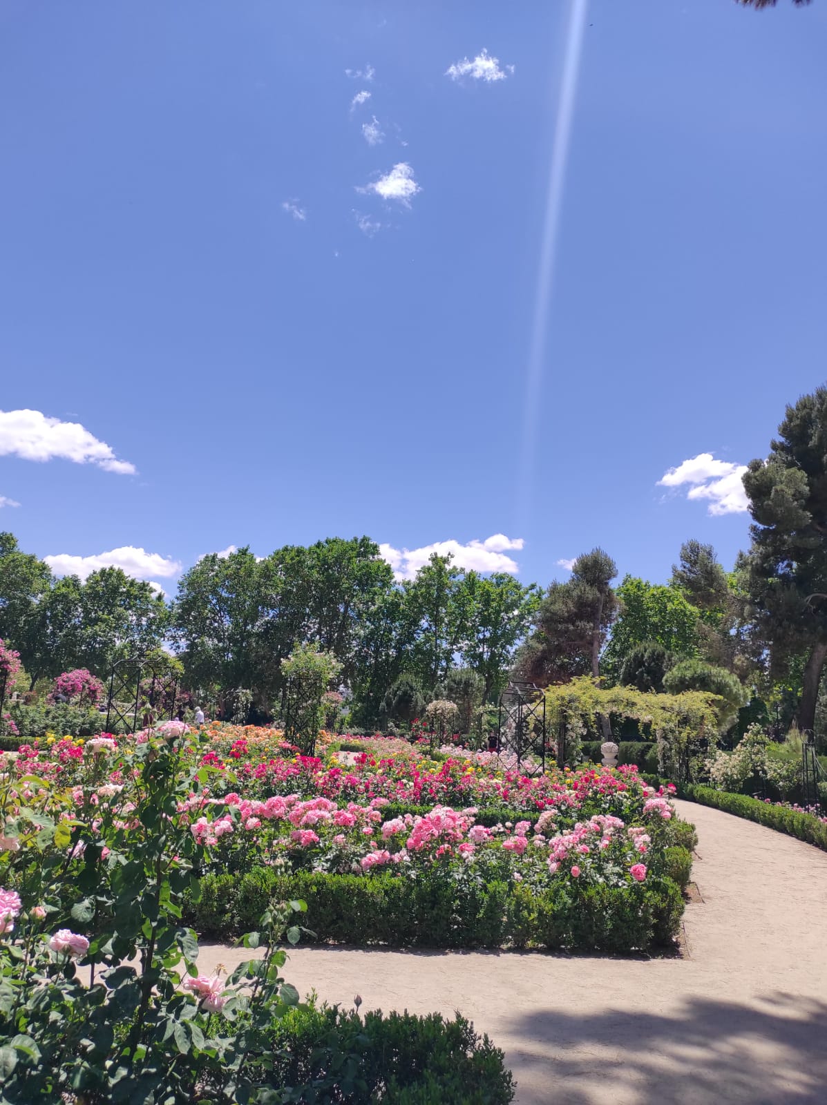 Alongside this pedestrian highway, you can find the Rosaleda. It is a huge rose garden filled with various types of roses from all over the world. In the springtime all the flowers are in bloom, and the smell of roses fills the entire park.