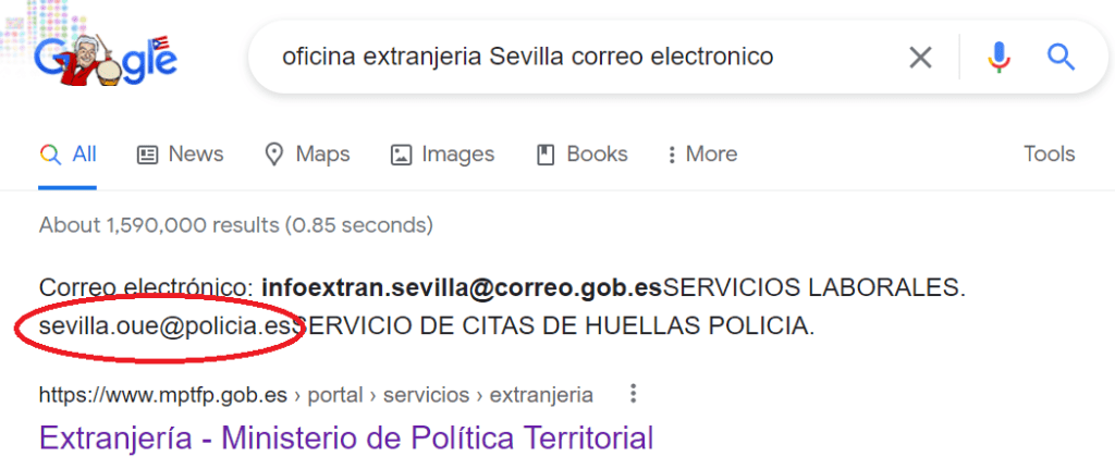 To find the email address of your local Oficina Extranjería, google “Oficina Extranjeria (region) Correo Electronico”.
