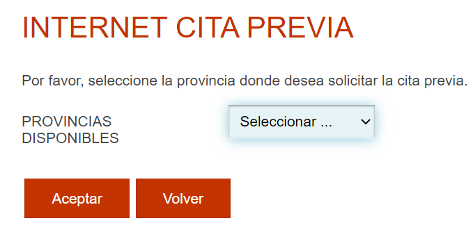 Do NOT select “TRÁMITES OFICINAS DE EXTRANJERÍA”.