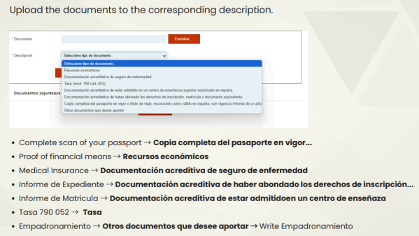 If you are limited by the amount of “otros” you can use, you may have to combine files. Just make sure your files are labeled correctly in Spanish and are well organized. (Attach all the previously mentioned required documents).